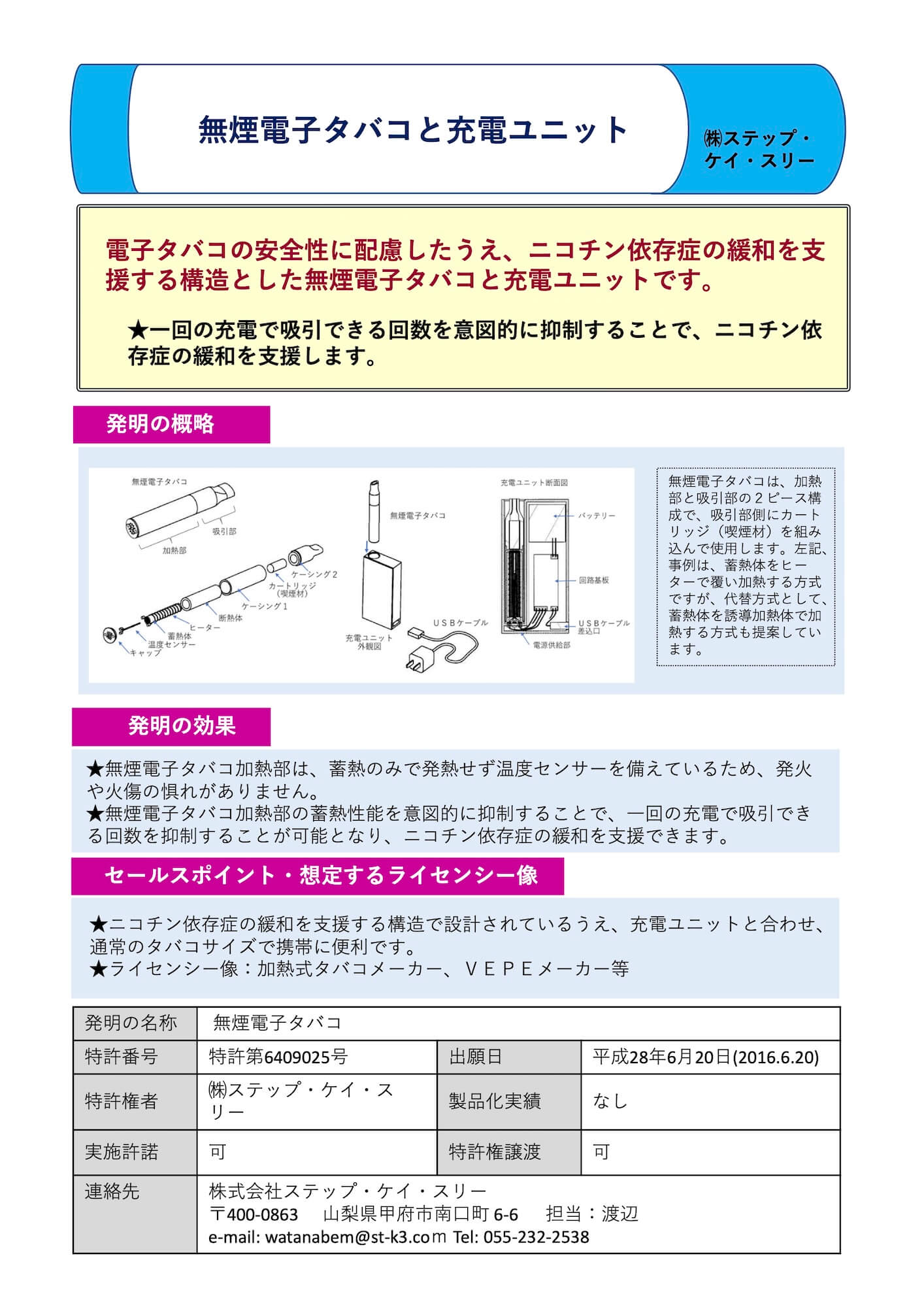 | 4 | 特開2017-225357 | 特願2016-121568 | 2016/06/20 | 2017/12/28 | 無煙電子タバコ | 株式会社ステップ・ケイ・スリー |